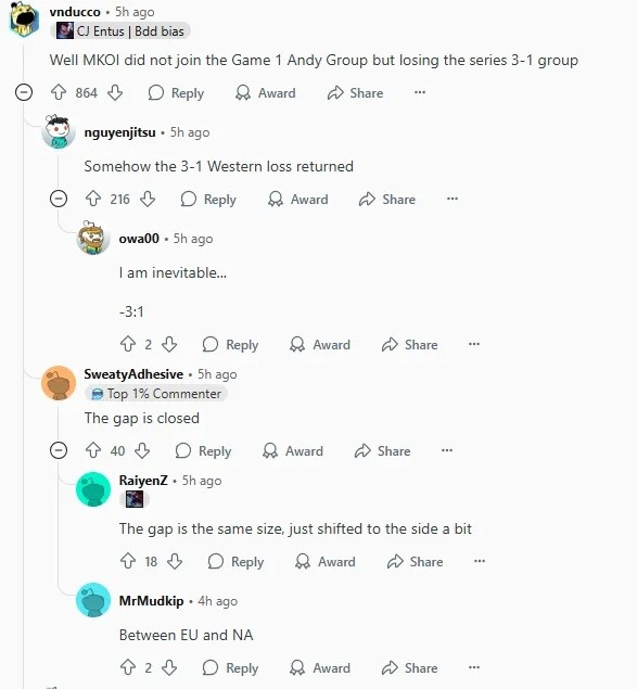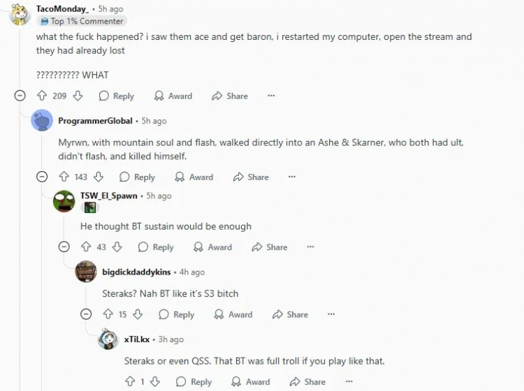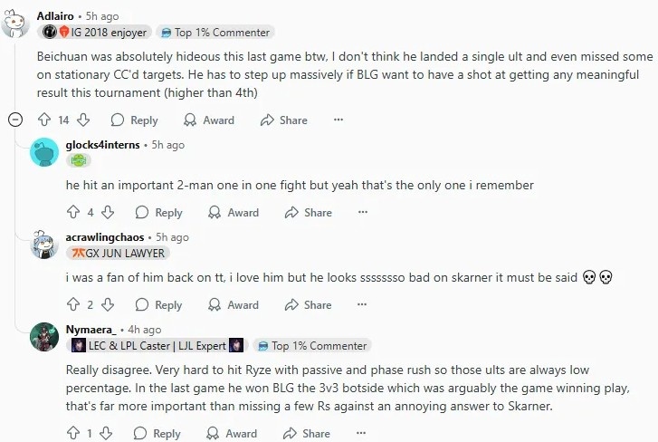 直播吧7月4日讯 MSI淘汰赛BLG 3-1 MKOI,Reddit论坛网友热议了本场比赛;
