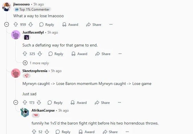有趣的是,在 Myrywn 两次离谱的失误之前,他在男爵团战中一打五。