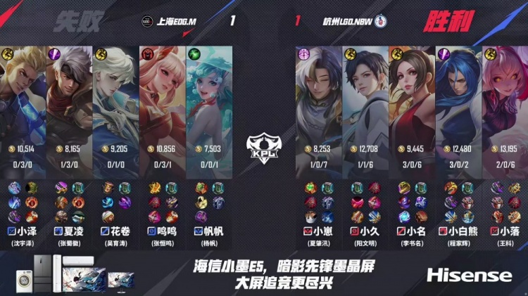第一局:杭州LGD.NBW 0-1 上海EDG.M