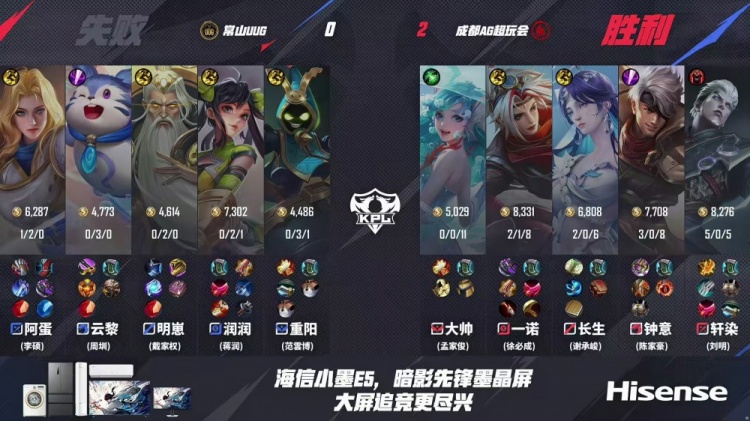 直播吧7月4日讯 2025KPL夏季赛今日压轴之战是由成都AG超玩会对阵到常山UUG!第一局AG前期凭借老虎的强势期成功打出压制节奏,后续AG直接凭借经济压制一路平推拿下胜利!第二局AG再次凭借夏侯前期的强势打出节奏,随后AG不断控制野区打出压制,后续UUG完全招架不住,AG拿下胜利!第三局UUG前期凭借防守反击打出节奏,但是AG在十分钟节点持续发力成功完成翻盘拿下胜利!