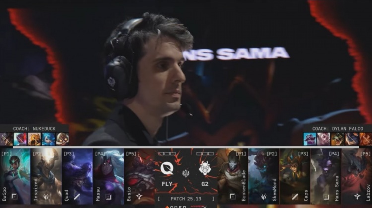 红色方G2:BrokenBlade剑魔、SkewMond茂凯、Caps蛇女、Hans Sama烬、Labrov牛头