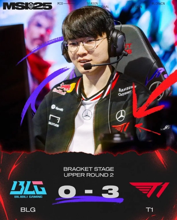 直播吧7月6日讯 MSI淘汰赛T1以3-0横扫BLG,赛后LCK官方发文祝贺: