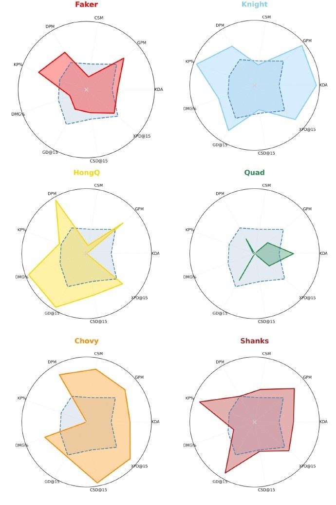 >MSI剩余六队选手数据雷达图:暂时没有六边形战士!