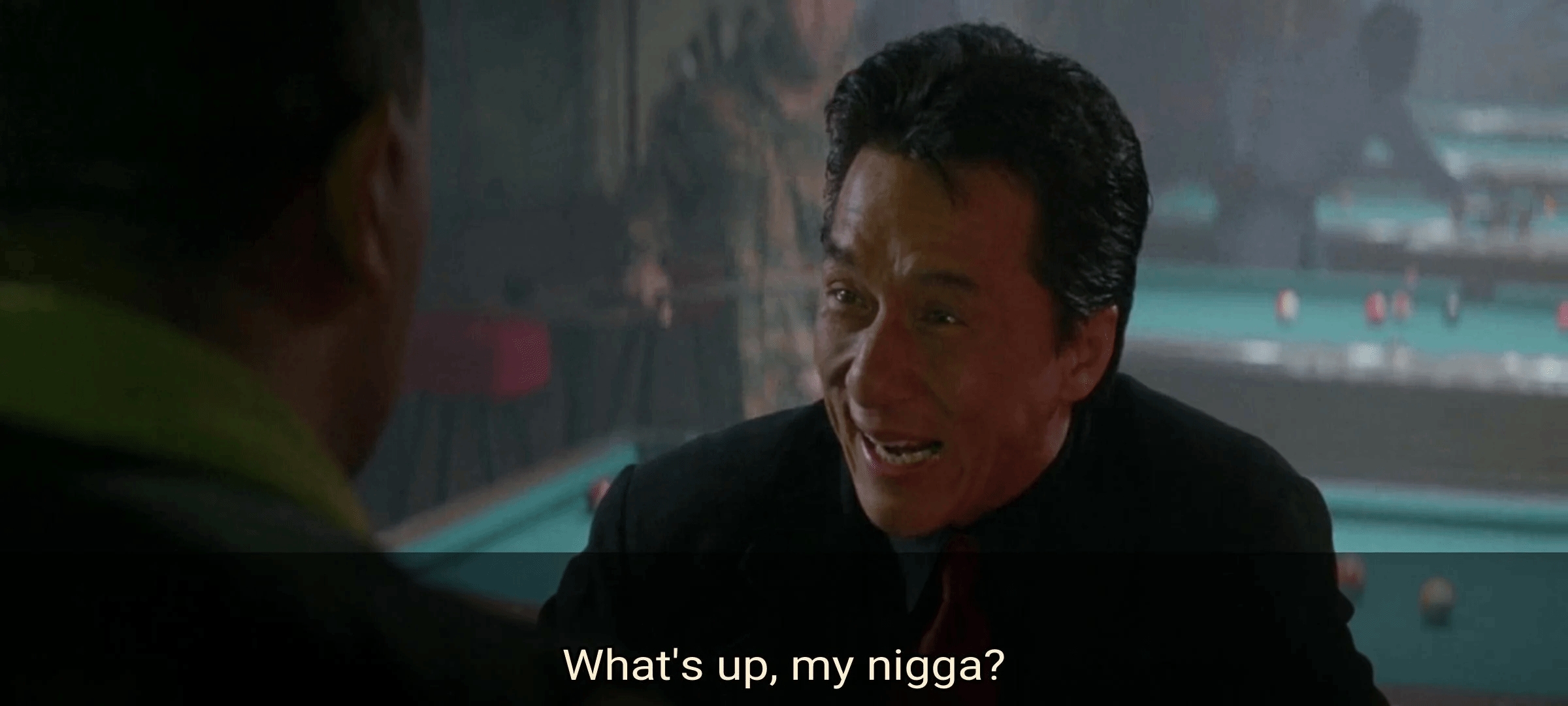 如果你看过本片,就会想起来电影中出现的各种种族主义笑话、刻板印象,电影中甚至由于成龙的“N Word”而延伸出了一段精彩的打戏。但当年大家一笑置之的言辞,当下似乎已经没法友善存在了。
