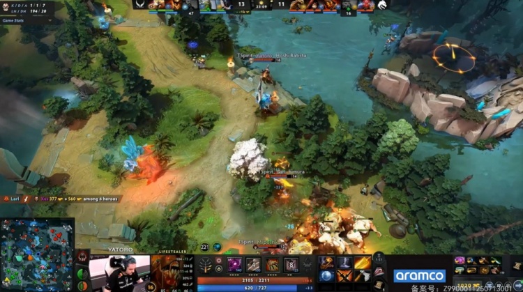 【14:11】XG双酱油合体配合Xxs进Spirit野区抓掉Larl,Larl复活之后下路强留XinQ小小人头,Yatoro小狗掏出辉耀。XG经济领先2k。