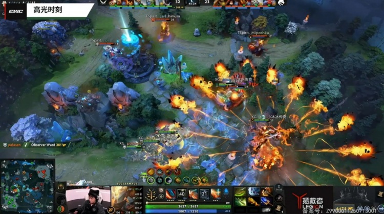 【33:22】XG开雾入侵Spirit野区,XinQ小小扔飞Collapse女王,Xxs船长双杀,Spirit正面毫无一战之力,XG打出2换4吃掉二代肉山,不朽之守护给到Ame剑圣,XG经济领先1w5k。