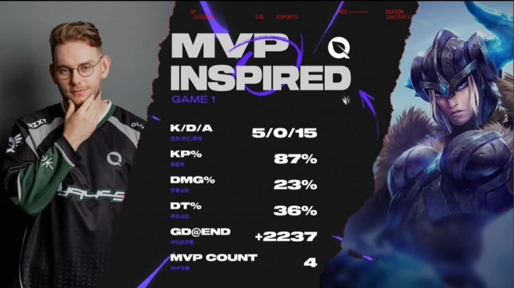 第一局前期Inspired猪妹多次下路发力,配合Massu女枪连续击杀Elk女枪与ON妮蔻,FLY建立起小幅经济领先。