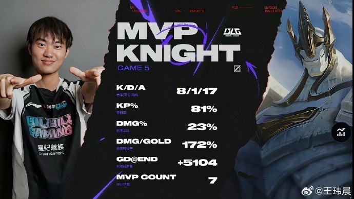 Knight加里奥再次拿下MVP,今天MVP三连。
