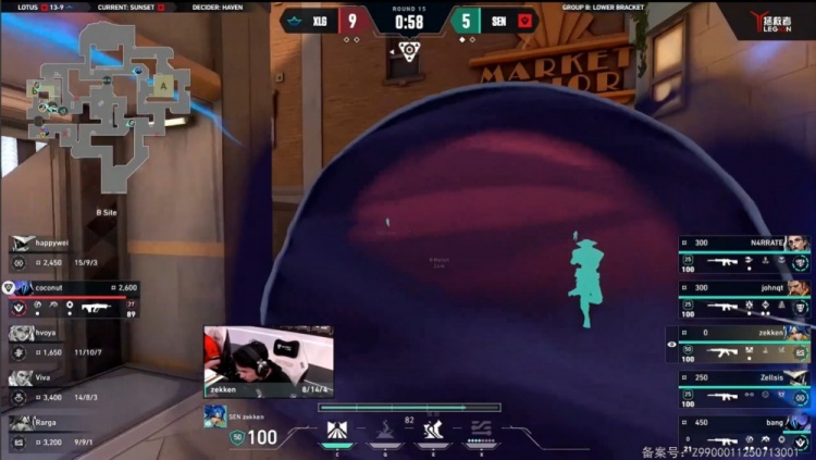 第15局双方长枪局,zekken在B通联手bang带走viva与Rarga,coconut无处可跑也被缴杀,XLG9-6SEN。