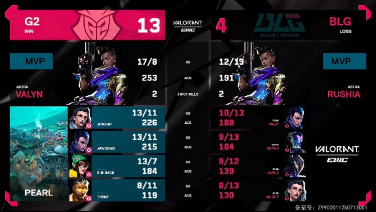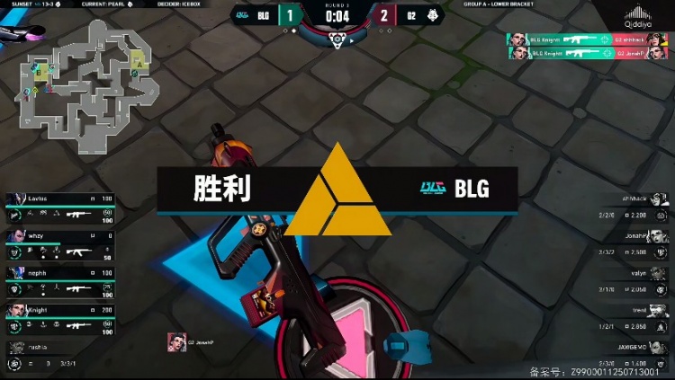 第一局:G2开局在A点控球随后,G2选择转点进到B点,BLG在点内被收下多人,随后BLG回防也被G2架住,G2拿下胜利!