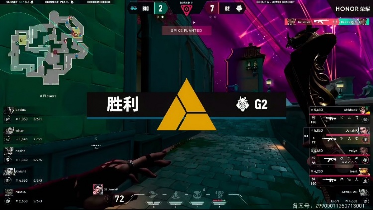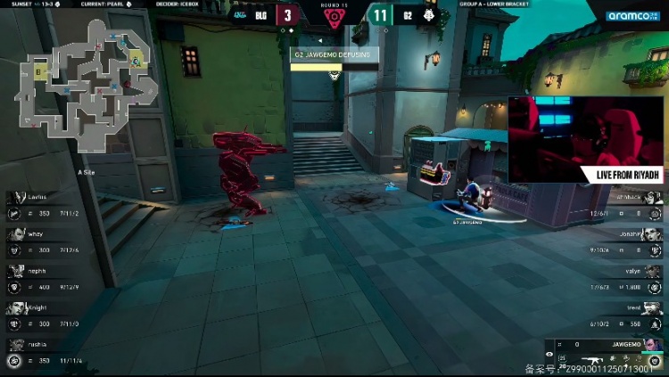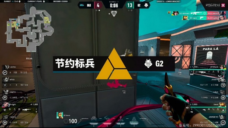 第十局:G2开局选择打B点,G2成功完成进点,BLG在A点前压收下一人但是面对回防B点被G2全部接住,G2拿下胜利!