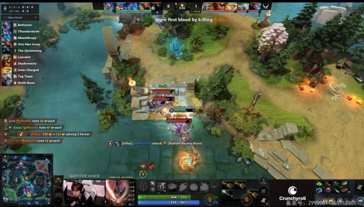 【0分钟】一级团XG三人逮捕了Riddys亚巴顿,XinQ海民拿下一血!不过pma斧王支援最终是打了个1换1!