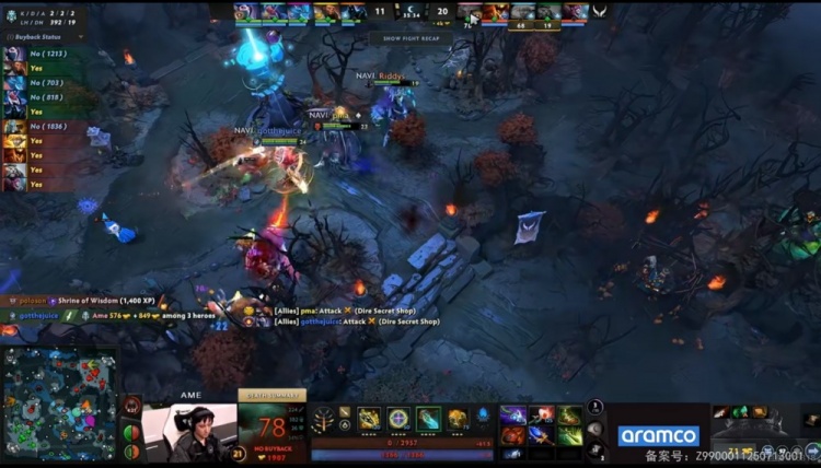 第二局XG前期对线连续击杀打爆TA,一度让TA的经济来到第七位!但是中期XG带盾坐拥一万优势毫无节奏任由gotthejuice的TA把经济刷了回来!XG上高团轮流开送,随后中路XinQ海民手贱+Ame长矛手野区白给!NAVI一波打回一万经济差的劣势,比赛往后进行,pma斧王人群开转完克长矛手+配合双核瞬秒四个,XG遭NAVI翻盘击败!