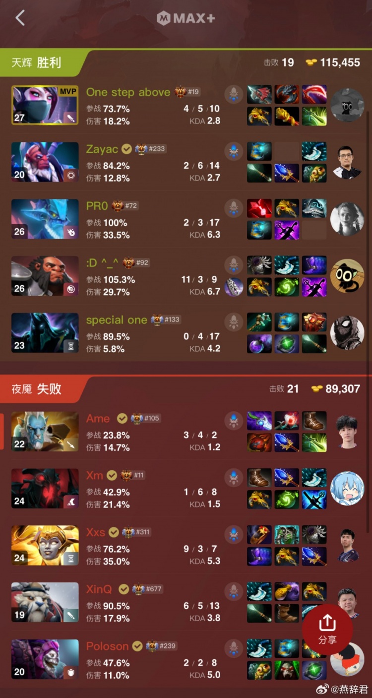 夜魇XG:Xm影魔、poloson戴泽、XinQ巨牙海民、Xxs破晓辰星、Ame幻影长矛手