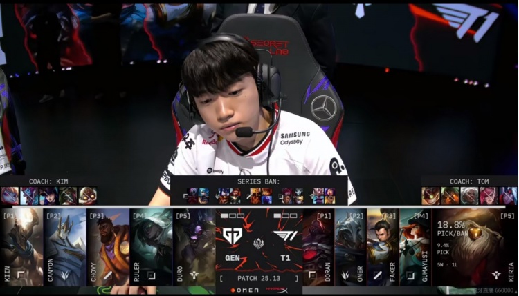 GEN:上单Kiin、打野Canyon、中单Chovy、下路Ruler、辅助Duro