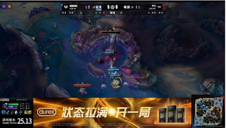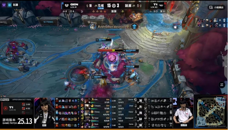 第二局:🎮GEN真发狂了!Doran奥恩+Oner皇子团战连续发威 T1扳平比分