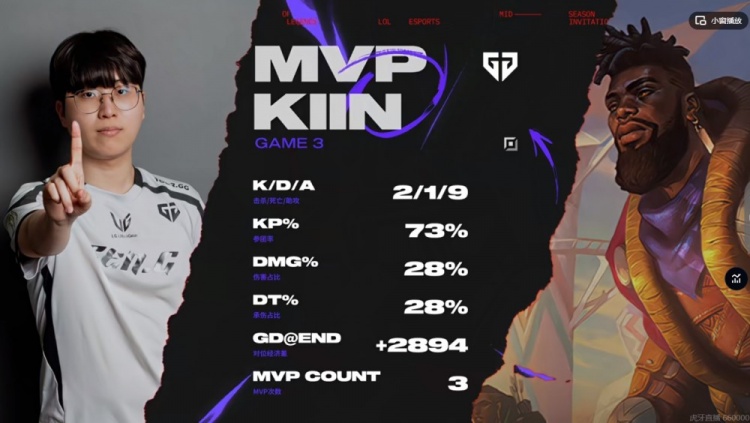 第三局比赛双方拢共选了6个前排英雄,前期持续发育换资源没有交战!20分钟双方才爆发一血!24分钟中路团T1先手但是配合出现了堪比前两天BLG的巨大失误!Keria巴德大招反而帮助GEN双C躲过了T1上中双大!回过神的GEN打出0换3拿下听牌龙!随后Keria巴德大命中潘森帮助T1抢到厄塔汗!但是GEN留住了Faker维克托拿下大龙!想换小龙的T1也失败,再被GEN打了个1换3拉开经济差!最终高地团Kiin奎桑提赶走维克托!GEN各个击破团灭T1,先行收下了赛点!