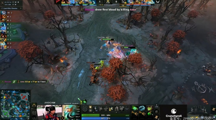 【2分钟】上路对线Jhocam小Y配合Ws蓝胖先击杀Ame影魔,再留住poloson小娜迦,拿下带一血的对线双杀!同时下路XinQ拉比克也被线杀!Talon相当于打了个0换3!
