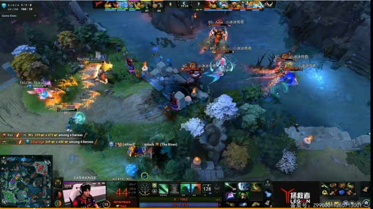 【33分钟】XG先破掉Talon下路高地!随后抱团转中!23savage水人出了蝴蝶回到了高地防守!XinQ拉比克一个举配合队友再秒蓝胖+小Y,poloson小娜迦开睡,XG抱团围杀掉了23savage水人!这波XG团灭TALON,赢下首局!