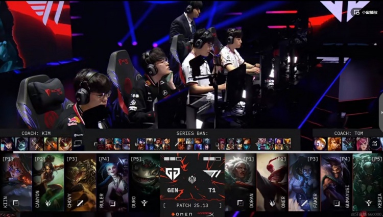 GEN:上单Kiin、打野Canyon、中单Chovy、下路Ruler、辅助Duro