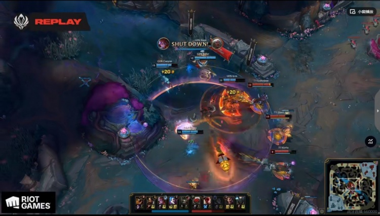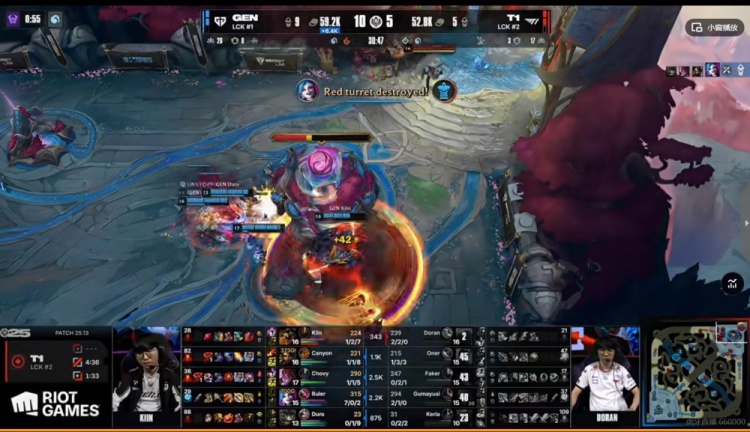 第二局:🎮GEN真发狂了!Doran奥恩+Oner皇子团战连续发威 T1扳平比分