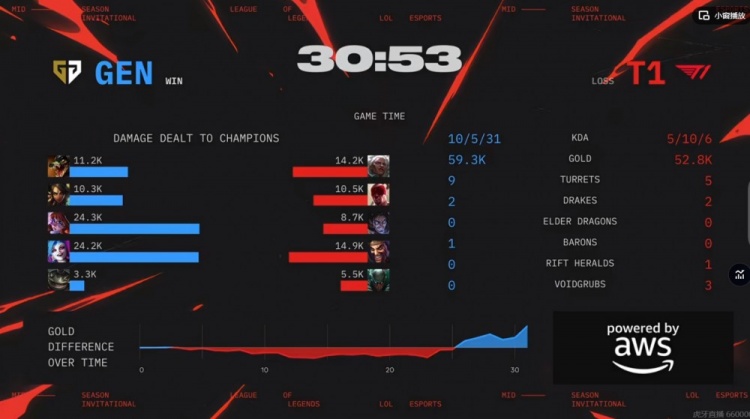 【29:55】T1中路强开Ruler金克丝但是有Duro塔姆一吞保护啊!GEN回头打残两个,Duro塔姆还闪现一舔留住了Doran安蓓萨!GEN推掉中路高地!想一波!Keria派克强开但是没有斩杀啊!自己倒下之后T1一个一个变成了葫芦娃救爷爷被GEN集火逐个击破!Ruler金克丝三杀收尾!GEN团灭T1结束比赛!先行晋级最终的MSI决赛!