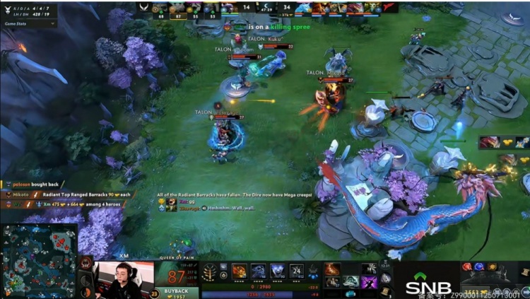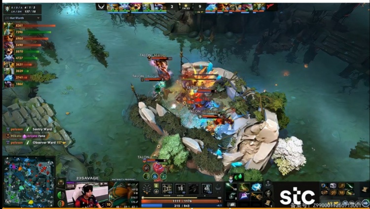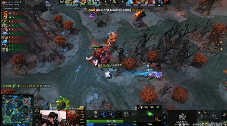 【42分钟】双方对开雾,XG上坡结果被TALON强开!Xm女王被Mikoto影魔贴脸强杀!Xxs獣位置和队友脱节,Ws滚滚开车配合队友搅乱阵型,TALON连续羊到了女王和小猴子!Jhocam小Y也给到了蛇棒!这波23savage先知三杀收割!TALON团灭XG,拿下肉山!先知带盾,奶酪给到了小Y!XinQ小小交出买活!随后TALON再拆XG中路高地!经济差一下来到22K!