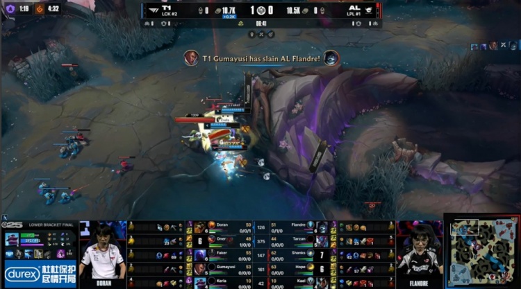 中期Keria布隆多次关键反打,T1下路越塔击杀Shanks发条。Doran鳄鱼开大单杀Shanks,T1打出1换4后拿下先锋,推掉AL下路一塔。