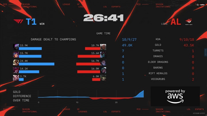 直播吧7月12日讯 在今日的MSI败者组决赛T1对阵AL的第四局比赛上,圣枪哥狼母拿到4个人头却整场毫无发挥,输出仅比辅助高!