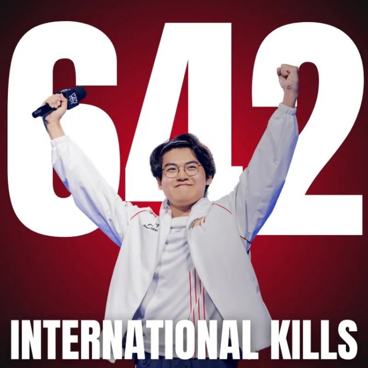 直播吧7月12日讯 T1战胜AL后,Gumayusi国际赛击杀数达到642,排名历史第3位: