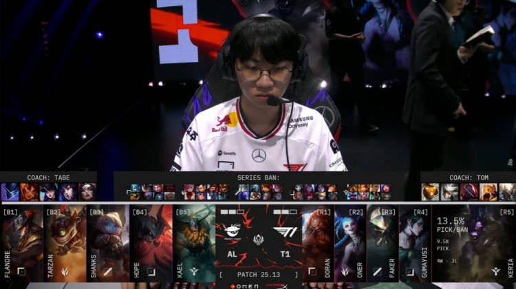 T1:Doran、Oner、Faker、Gumayusi、Keria