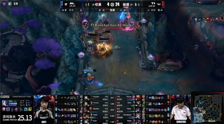 直播吧7月12日讯 2025季中冠军赛淘汰赛败者组决赛,由AL与T1争夺最后一张决赛门票,最终双方鏖战五局,AL2-3不敌T1止步于此,T1晋级MSI决赛,将与GEN争夺冠军。