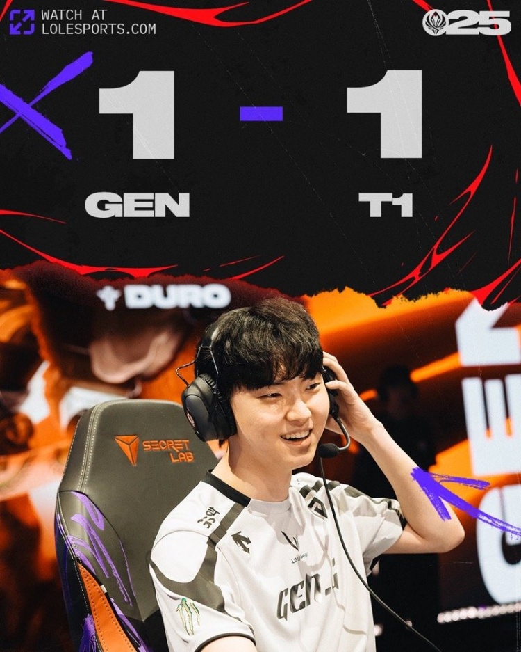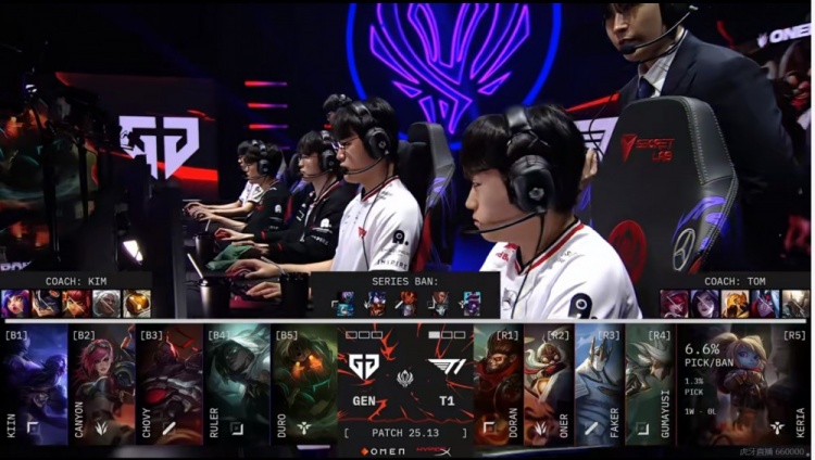 GEN:上单Kiin、打野Canyon、中单Chovy、下路Ruler、辅助Duro