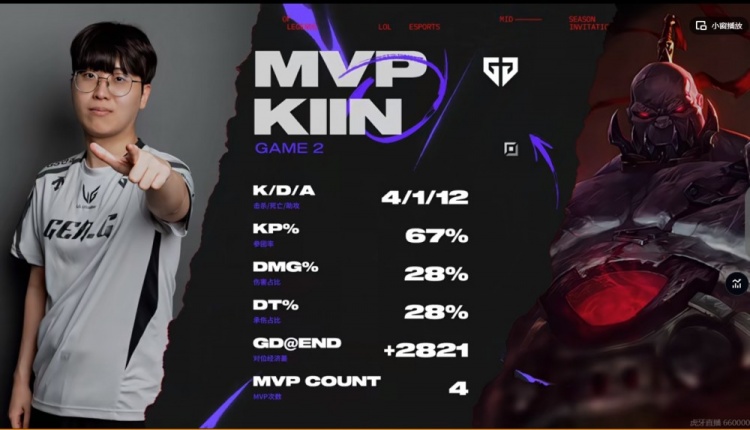第二局Kiin塞恩前期对位不落后,换线到下路还单杀掉了Gumayusi库奇拿下一血!T1几波团战顶住了局势,还在上路团借助Chovy瑞兹开车失误和GEN强行打了个4换4!但是无解发育,对位压40刀的Kiin塞恩团战端T1开始处理不掉了!Doran青钢影连续两次对手野区看戏被逮捕,GEN拿下厄塔汗之后大龙逼团,Keria波比换惩抢龙失败!GEN拿下大龙给足压力再拿水龙魂,T1绝命一波伤害根本不够啊!GEN“双车”体系防守反击稳健扳回了一分!