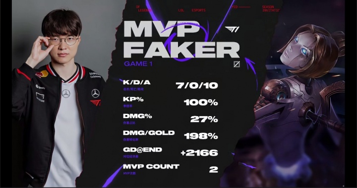 >7-0-10!Faker发条完美表现高地一打三,并拿下首局MVP!