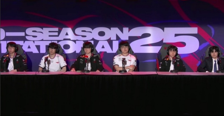 直播吧7月13日讯 2025MSI,T1不敌GEN决赛失利,赛后T1全员参加媒体发布会。