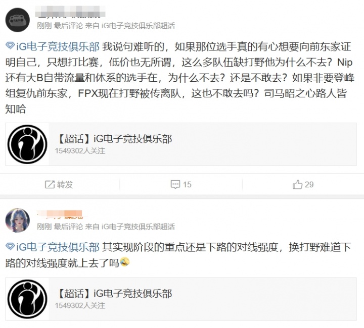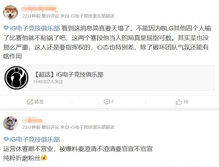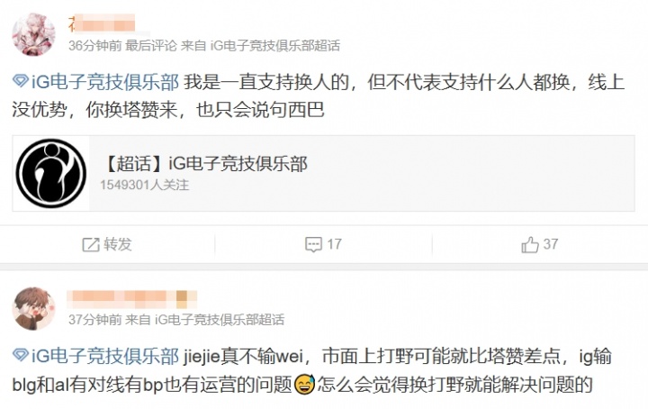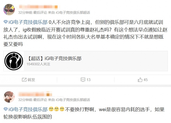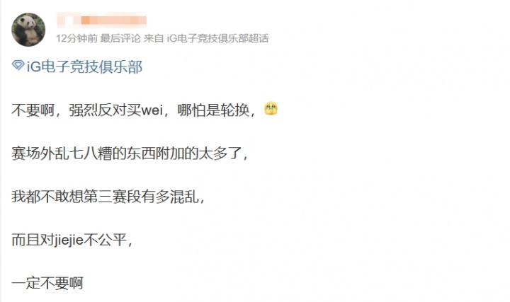 >iG超话粉丝纷纷抵制Wei加盟:强烈反对!最好别来,jiejie罪不至此