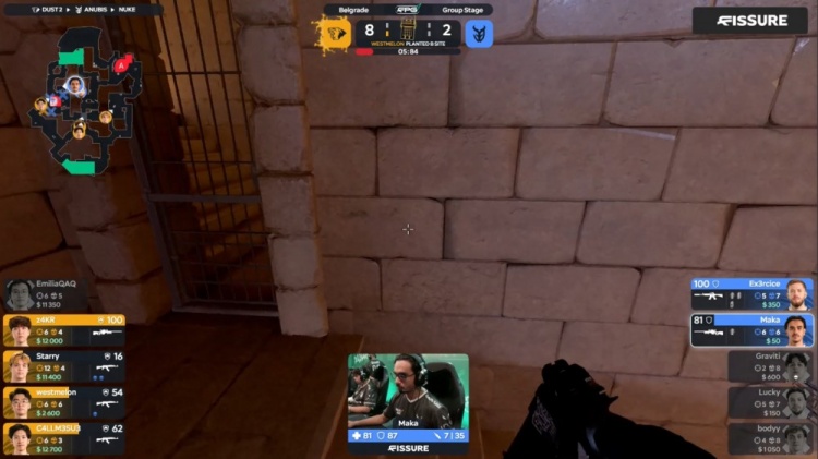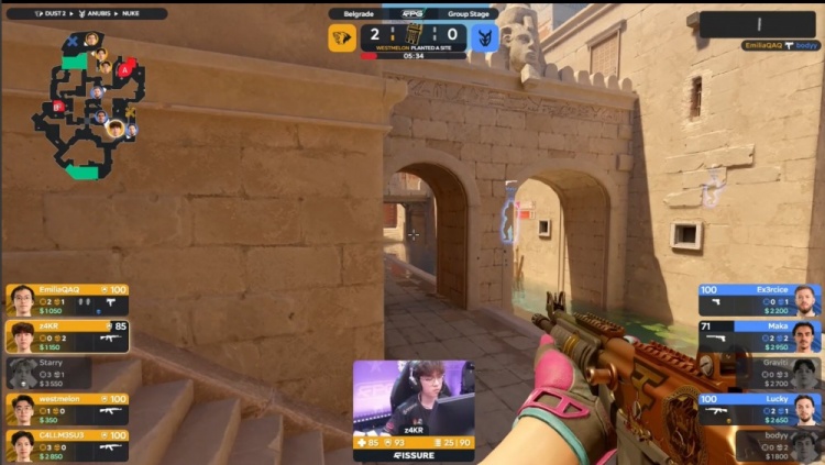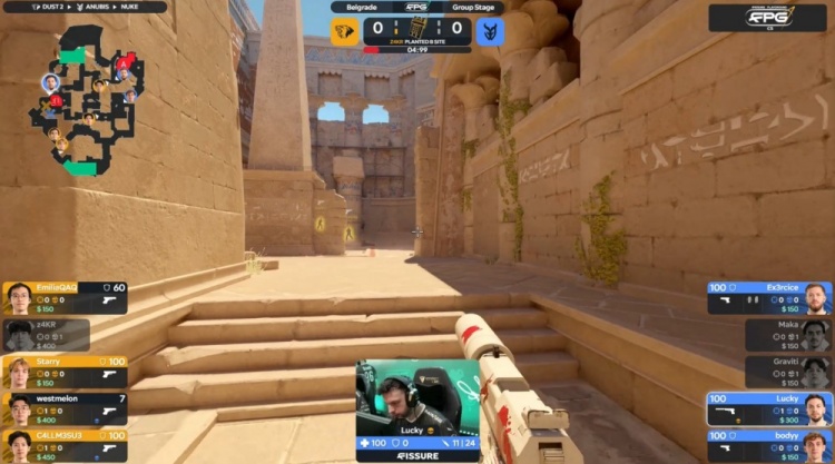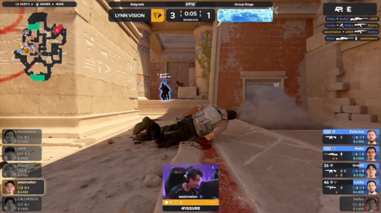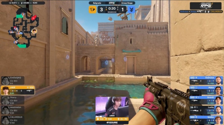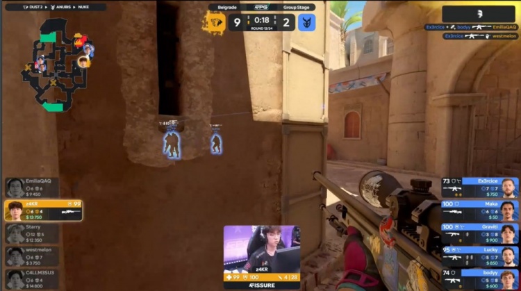 图二3DMAX选图阿努比斯,上半场LVG先攻连续冲击B区奏效,Starry与Su3多次拿到关键击杀,LVG稳步建立领先。随后LVG多点开花,通过水下与A大不断提速推进,多次成功下包得分。虽然中段3DMAX凭借bodyy与Ex3rcice的配合追回几分,但未能遏制Starry与三叶的持续发挥,半场LVG大比分领先。