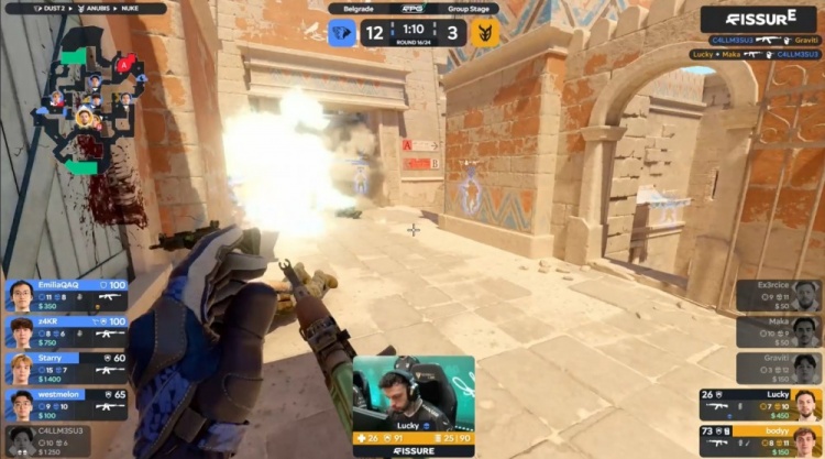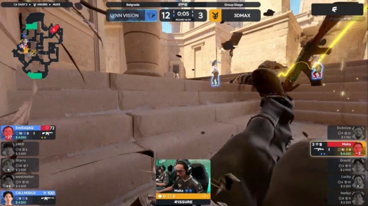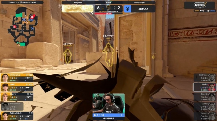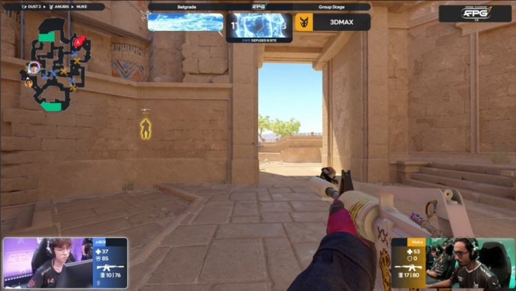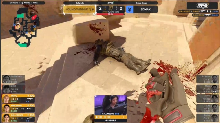 上半场LVG先攻,手枪局LVG光速冲B得手下包,Maka与Graviti被杀,3DMAX三人保枪,C4爆炸,3DMAX0-1LVG。