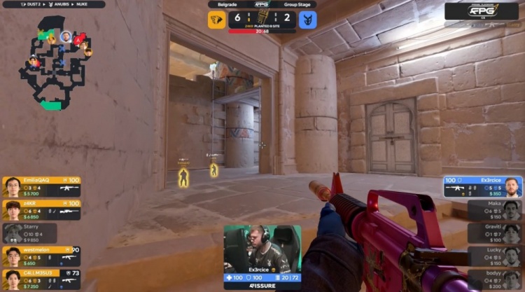 第11局来到长枪,水下Graviti击杀Emilia,但Starry带队冲B得手进点双杀,LVG在B下包,残局Maka与Ex3rcice两人继续保枪,3DMAX2-9LVG。