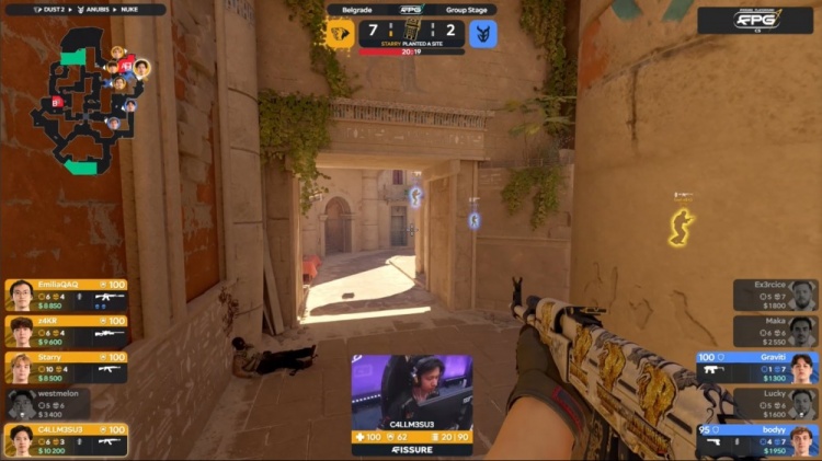 第5局黑屋bodyy双杀,C4掉在黑屋,Ex3rcice绕后来B击杀Starry与Su3,三叶藏在水下保枪击杀Ex3rcice,3DMAX2-3LVG。