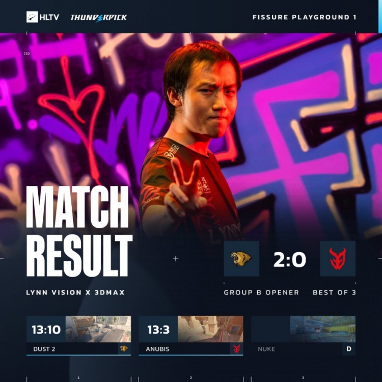 下半场LVG防守端稳固,Starry与Su3接连双杀打乱3DMAX进攻节奏。紧接着三叶强拆C4得手,Emilia与西瓜末段完成夹击清场,最终LVG以13-3拿下图二,横扫3DMAX拿到开门红!