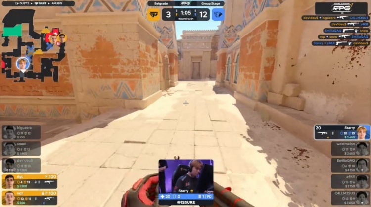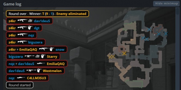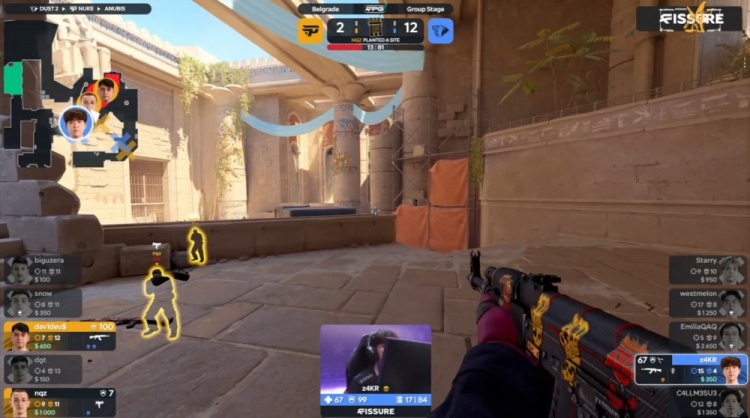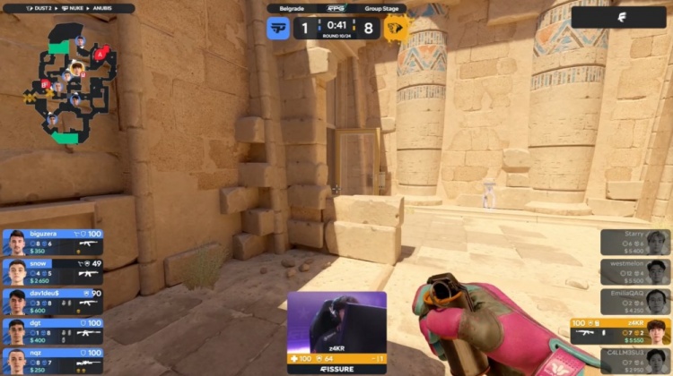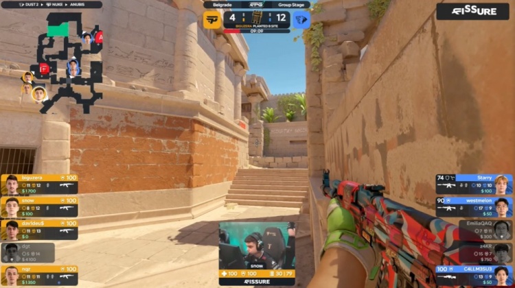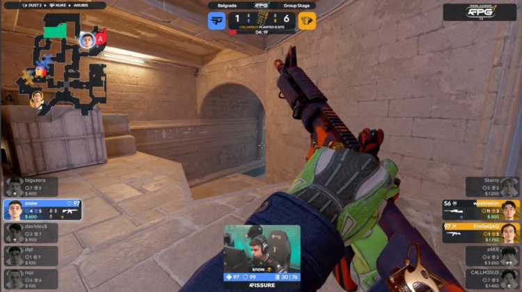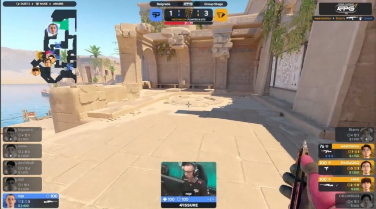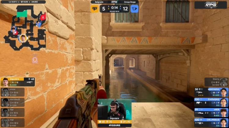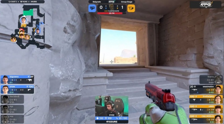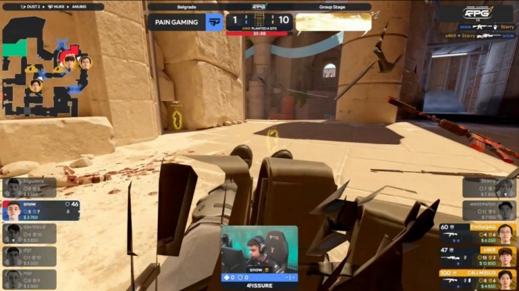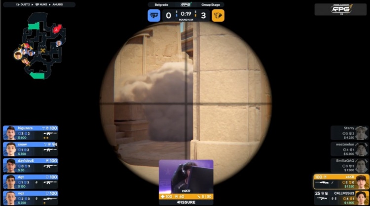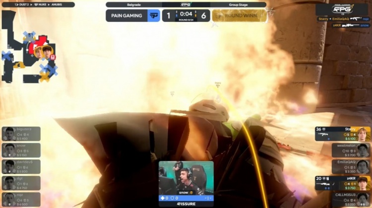 第4局nqz大狙在B穿墙爆头带走Emilia,水下biguzera摸到西瓜站位将其击杀,随后biguzera回到B点再杀Starry,三叶与Su3保枪,paiN1-3LVG。