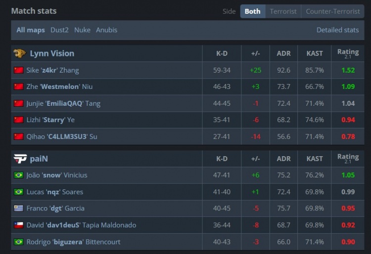 第10局LVG水下黑屋打B,nqz大狙看B一发带走Su3后再杀Emilia,Starry与西瓜随后被杀,paiN轻松0换4,三叶带包中路去A连杀小雪与biguzera,再杀nqz拿到三杀,残局1v2,三叶在A假下包再杀dgt与dav1deus完成五杀,paiN1-9LVG。