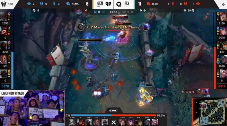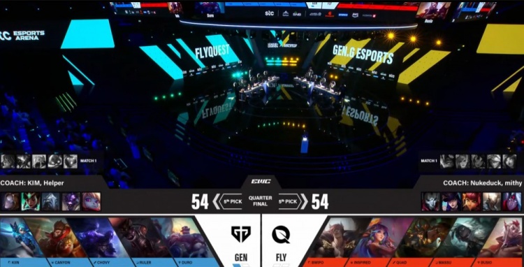 直播吧7月18日讯 EWC电竞世界杯英雄联盟项目淘汰赛继续进行,GEN的对手为FLY!