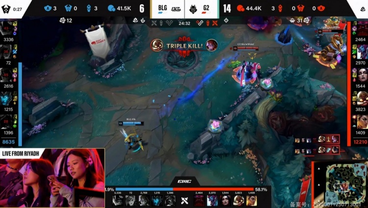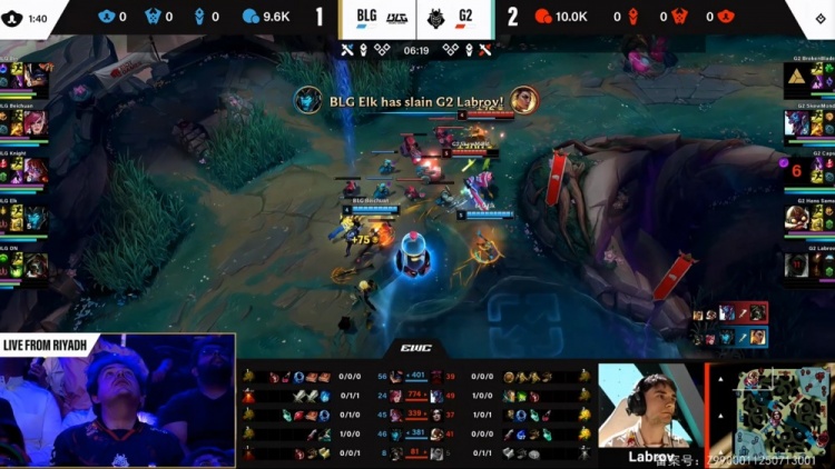 直播吧7月18日讯 EWC电竞世界杯英雄联盟项目来到淘汰赛阶段,最终G2让一追二淘汰BLG,晋级四强。