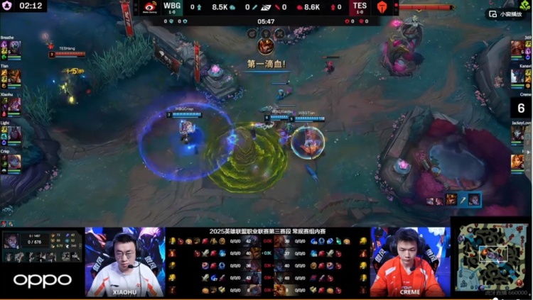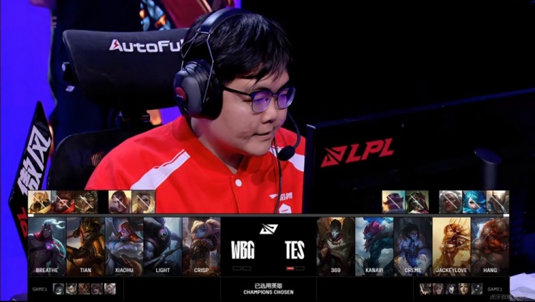 WBG:上单Breathe、打野Tian、中单Xiaohu、下路Light、辅助Crisp