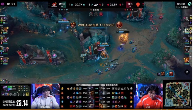 直播吧7月20日讯 2025年LPL第三赛段常规赛正在进行中,今天的第二场比赛是登峰组的WBG对阵TES,两队的辅助Crisp和Hang将要和自己的前东家交手!