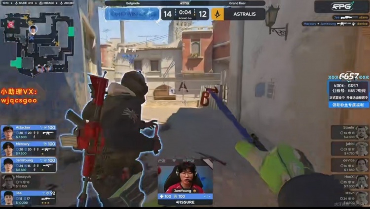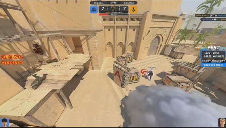 第二局Jee拱门大狙+手雷三分球拿下双杀!JamYoung前顶B二楼也拿到击杀!TYLOO的4V2局面!A队双人静步摸B小道被TYLOO拱门+双人B小直接夹击全部歼灭!14-12!