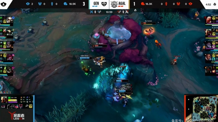 【18:25】GEN下路推进拔掉AL一塔,GEN经济领先4k。